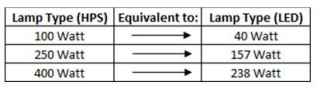 RATES FOR LED LAMPS ARE EXPECTED TO BE HIGHER THAN THE CURRENT RATES FOR HIGH PRESSURE SODIUM LAMPS. FUTURE RATE(S) TO BE REVIEWED AND APPROVED BY CITY COUNCIL LATER THIS YEAR.